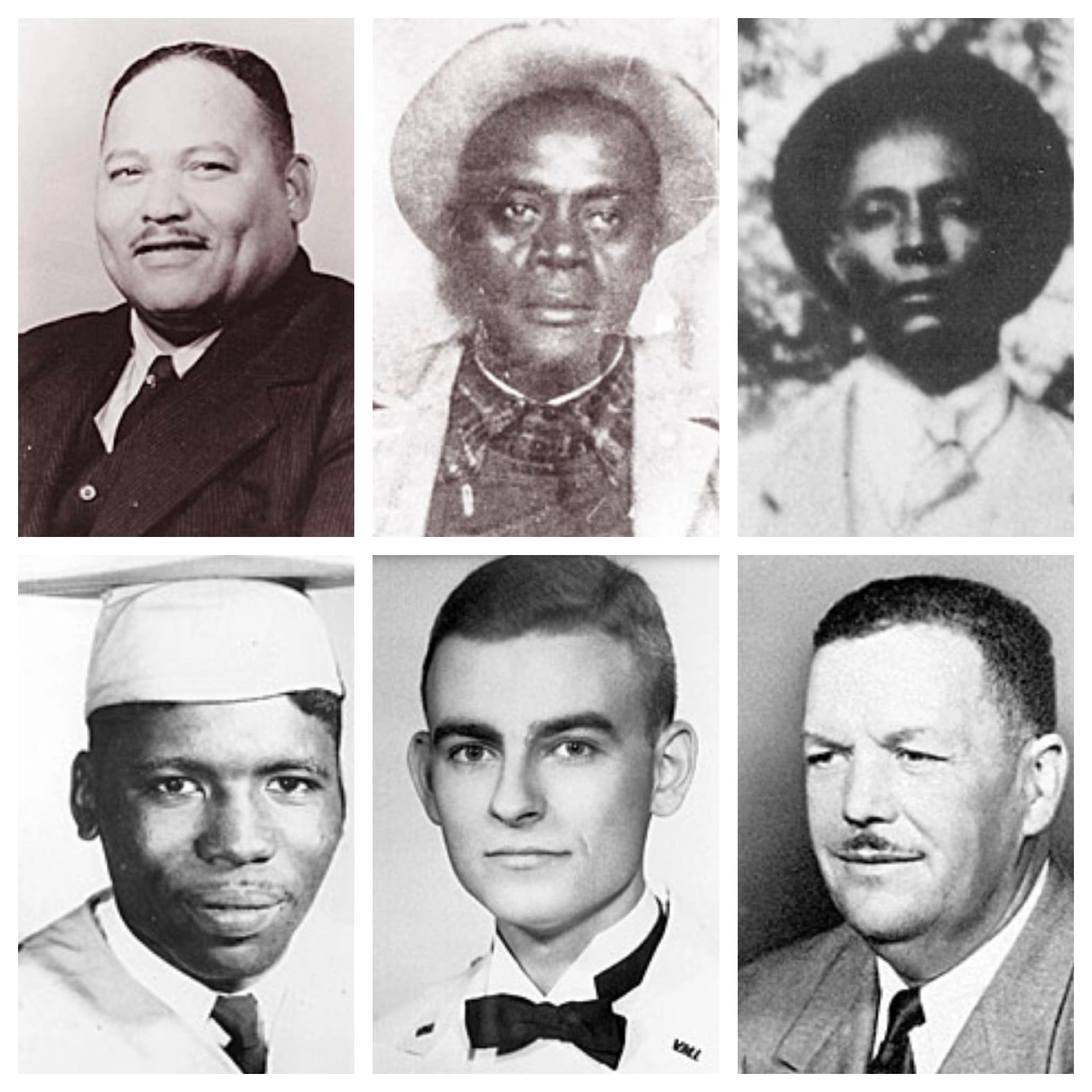 Clockwise from top left: Rev. George Lee, Lamar Smith, Herbert Lee, Vernon Ferdinand Dahmer, Jonathan Myrick Daniels, Jimmie Lee Jackson.