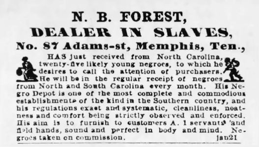 THE undersigned wishes to purchase a large lot of NEGROES for the New Orleans market. I will pay $1200 to $1250 for No. 1 young men, and $850 to $1000 for No. 1 young women. In fact I will pay more for likely NEGROES Than any other trader in Kentucky. My office is adjoining the Broadway Hotel, on Broadway, Lexington, Ky., where I or my Agent can always be found.